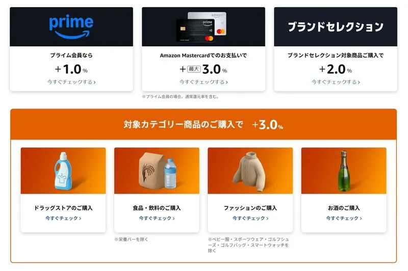 - Amazon Mastercardでお買い物をする 最大 +3%(通常の還元率も含む)