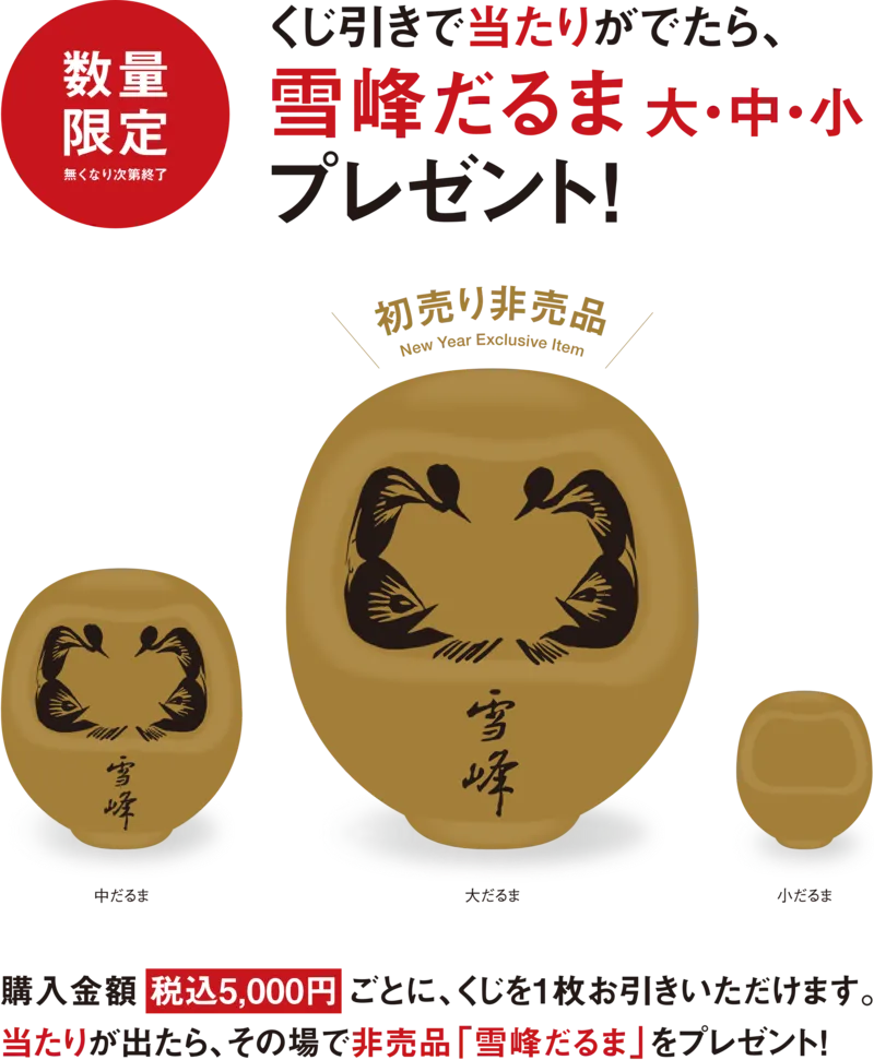 当たりが出ると、ここでしか手に入らない非売品「雪峰だるま」を獲得できるチャンスです。