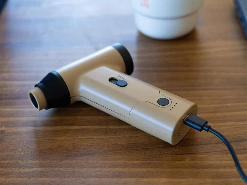 ⑤ポケットに忍ばせて、USB-CでチャージOKの携帯ブロワー
