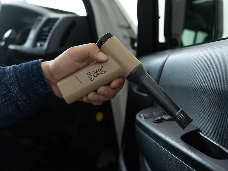 トバシマクリスTなら、ブラシ付きノズルで掻き出しながら風で飛ばせるので、届きにくい場所の掃除が一瞬で終わります。キャンプ帰りの車内リセットにも最適。