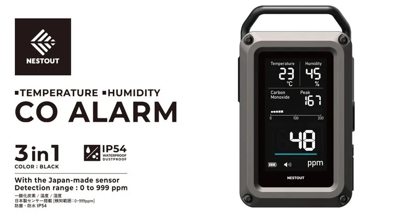 エレコムの一酸化炭素チェッカーは、アウトドアブランド「NESTOUT(ネストアウト)」から2種類が登場。
