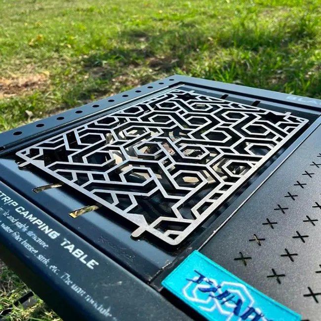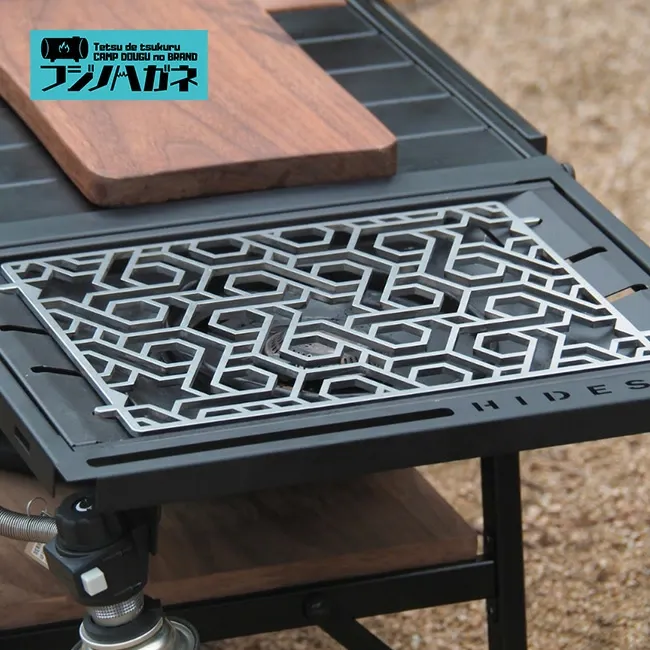 シンプルでありながら多機能、CAMP GEEKSの「FB_Grid」は、さまざまなサイズの調理器具に適応し、鍋敷きとしても活躍します。