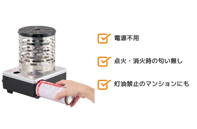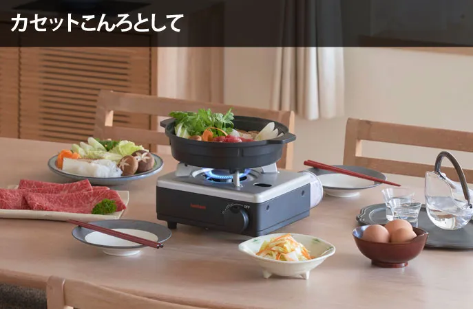 電源不要のカセットガス式を採用しているため、日常使いはもちろん、停電時や非常時にも対応できる点が大きな特徴!