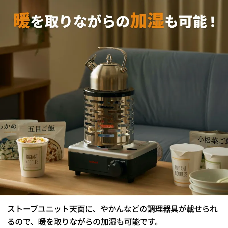 調理と暖房、「別々に用意する必要がない」という点が、従来のカセットコンロやストーブにはない魅力です。