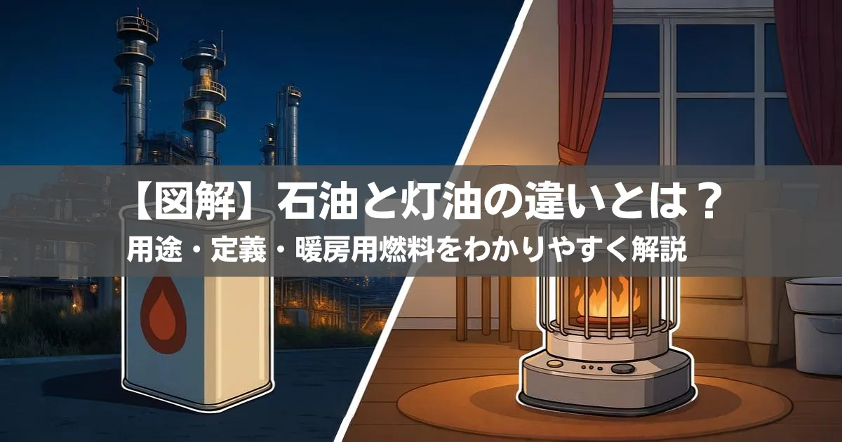 この記事では、JIS規格や資源エネルギー庁のデータをもとに、石油と灯油の定義・用途・性質の違いを図解でわかりやすく整理。さらに「石油暖房」と「灯油暖房」の違いについても解説します。