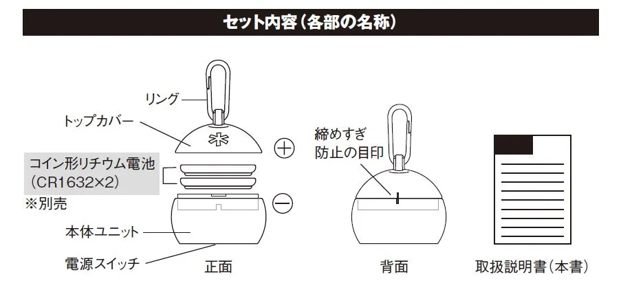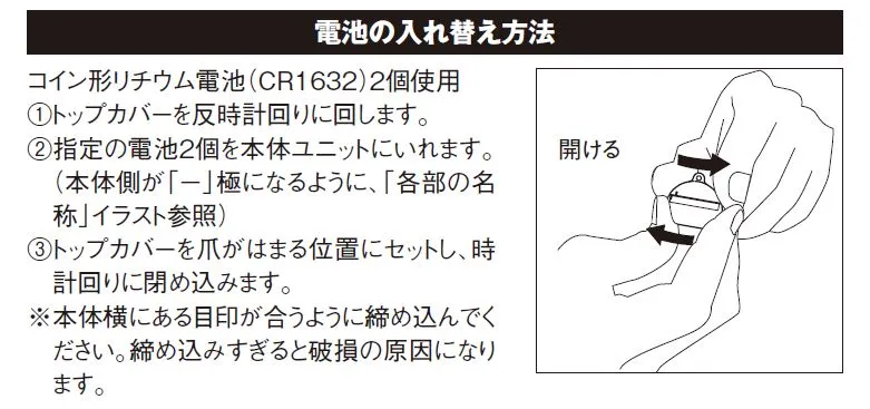 電源CR1632コイン形リチウム電池×2個(別売)