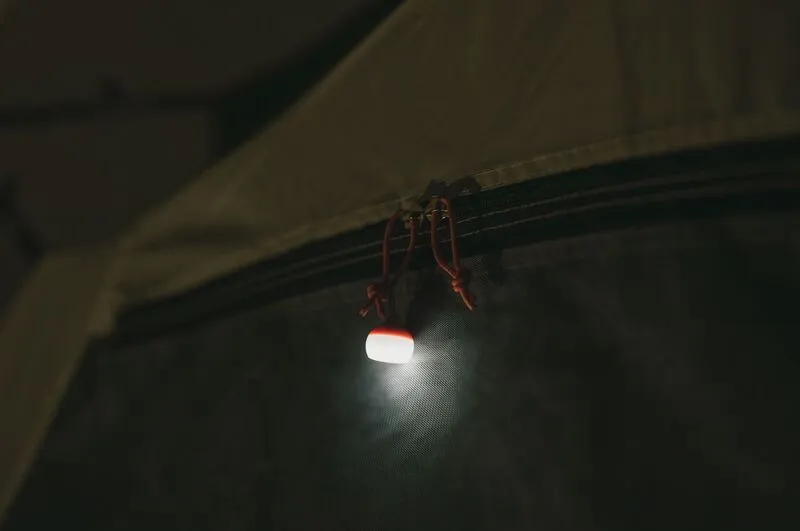 一方で、明るさと点灯時間は、メインランタンのように広い範囲を長時間照らす設計ではありません。Hiで約2時間、Lowで約31時間という仕様から見ても、つぶほおずきは夜のサイト全体を照らすライトというより、手元確認やロープの目印、常夜灯の補助といった使い方に向いたモデルです。