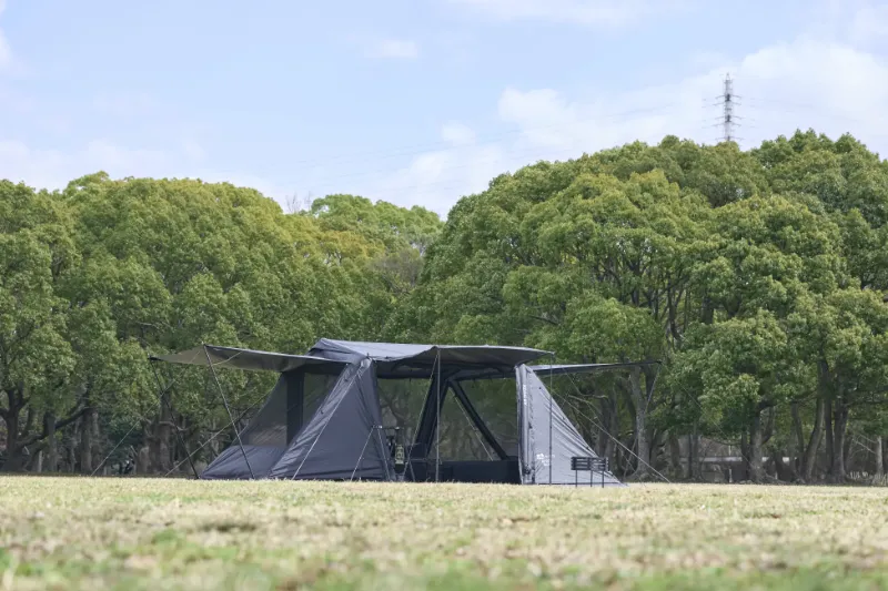また、フルクローズに加えて薪ストーブ用煙突穴を備え、グランドシート付属でお座敷スタイルにも対応しやすいのが特徴です。